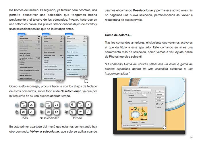 En esta ocasión Fernández Saura ha centrado las páginas de la publicación en dos conceptos fundamentales para el dominio y el aprendizaje de Photoshop, en primer lugar, las Selecciones y las herramientas que existen para su creación y, en segundo lugar, a las Capas y a sus Modos fusión y Estilos.