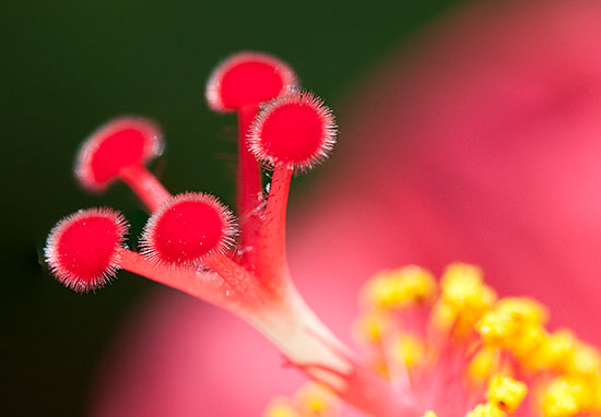 A veces una fotografía muy descriptiva de la flor puede dar el mejor resultado, sin embargo, es difícil en una toma macro conseguir la profundidad de campo necesaria para tenerla toda ella enfocada. Por eso una estrategia posible y efectiva consiste en reducir al mínimo la profundidad de campo y darle protagonismo a los detalles, es como descubrir una nueva dimensión en un sujeto mil veces visto.