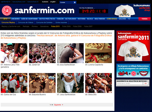 El certamen trata de suscitar la presentación de fotografías eróticas relacionadas con la famosa fiesta de Pamplona, ya sean fotografías de reportaje o de recreaciones sobre el tema. El caso es que va por la quinta edición y ofrece un premio sustancioso al ganador, 3.000 euros, que pagan sus organizadores, a saber, la revista Playboy y Kukuxumusu. Hasta ahí todo bien.