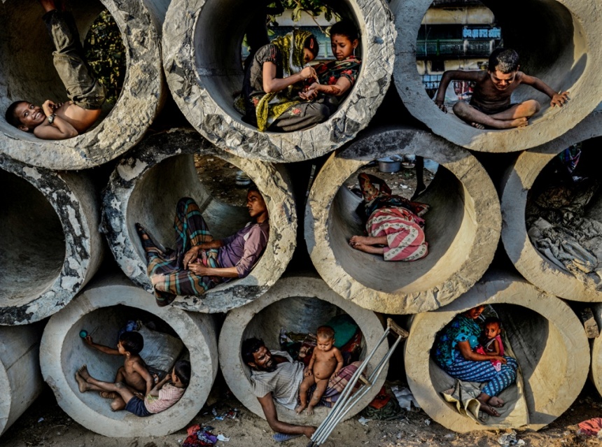 El premio Paisaje urbano Atkins –novedad de este año– se ha otorgado a una impresionante imagen de Faisal Azim de Chittagong, también de Bangladesh, por su trabajo titulado ‘La vida en el círculo’, que muestra una comunidad de mendigos que residen en tubos de hormigón.