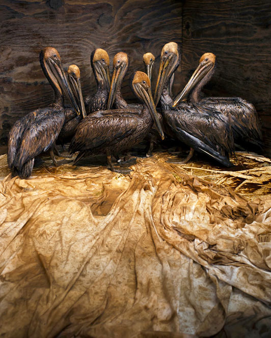 La imagen de un grupo de pelícanos manchados de fuel en un centro de tratamiento de aves salvajes de Lousiana (EEUU) ha merecido a Beltrá recibir el primer premio del jurado, que destacaron ésta entre las seis imágenes del mismo desastre ecológico presentadas por el autor al certamen.
