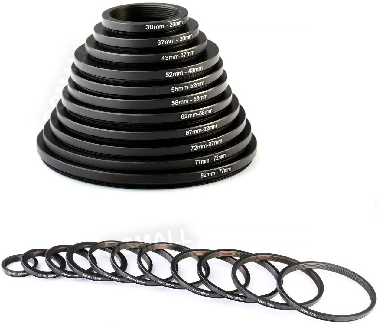 Este tipo de anillos reductores se venden en paquetes con varios para poder acoplar filtros grandes a lentes de menor diámetro, en este enlace puedes ver un kit de anillos: kit de anillos reductores para filtros circulares.