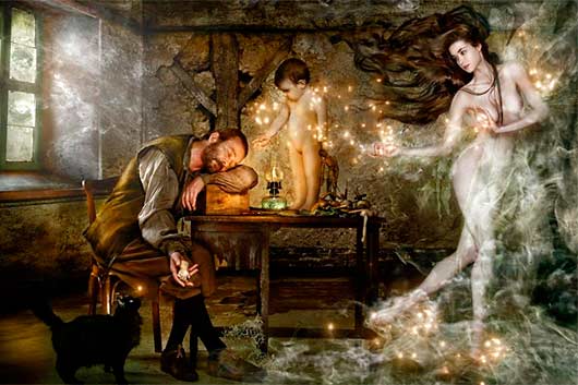 Y eso es precisamente lo que ha intentado Manuel de los Galanes, un fotógrafo madrileño que expone en la galería UnoNueve de Efti  su trabajo No tan felices, una revisión del cuento tradicional a la que, junto a su maestría para ejecutar producciones espectaculares y efectivas, ha querido unir protagonistas de relumbrón para sus cuentos. Así, Actrices y actores del renombre de Ariandna Gil, Marisa Paredes, Paula Echevarría, Alejo Sauras, Miguel Ángel Silvestre, Kira Miró, María León, Blanca Suárez, Paco León, Juan Diego, Dafne Fernández, Javier Cámara, Sergio Mur, Blanca Portillo, Ana Rujas, Natalia Verbeke, Lluis Homar, Martín Rivas, Ana María Polvorosa, Ruth Nuñez, Patricia Montero, Manuela Vellés, Alex Barahona, Antonio Hortelano, Michelle Jenner, Joel Bosqued, Natasha Yarovenko, Carlos Bardem y María Pujalte son los protagonistas de las fotos de esta muestra.