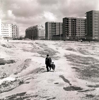“Paco Gómez. Orden y desorden” es la primera gran retrospectiva dedicada a este fotógrafo tras su muerte, ocurrida en 1998. El objetivo está claro: es una muestra definitiva para el conocimiento y valoración de quien realizó algunas de las imágenes más poéticas de la España de la posguerra. Su comisaria, Laura Terré, lo explica con estas palabras: “Se trata de un autor de gusto ortogonal (…). Se sitúa de frente y equilibra los límites del formato, excluye lo superfluo, busca los ejes que tensen el espacio y dispara”. La sencillez ante todo, pero también el silencio y la austeridad son la base sobre la que trabajó Gómez. De ahí que aparezcan tan a menudo los muros, las medianeras, las fachadas (como en Huellas, 1960, o Cristo, 1959), que entroncan directamente con la pintura matérica de Tàpies, y en los que, cuando aparecen ante ellos ciertos elementos del paisaje, como un vehículo (Tranvía en el paseo de Extremadura, 1959), un graffiti o un personaje (Familia de Turégano, 1959), remitan a la obra de fotógrafos como Aaron Siskind, Brassaï o Paul Strand.