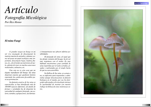 Entre estos últimos destaca un artículo dedicado a la foto micológica en el que un interesante texto viene acompañado por bellísimas imágenes de setas y hongos retratados con una gran maestría técnica y sensibilidad estética.