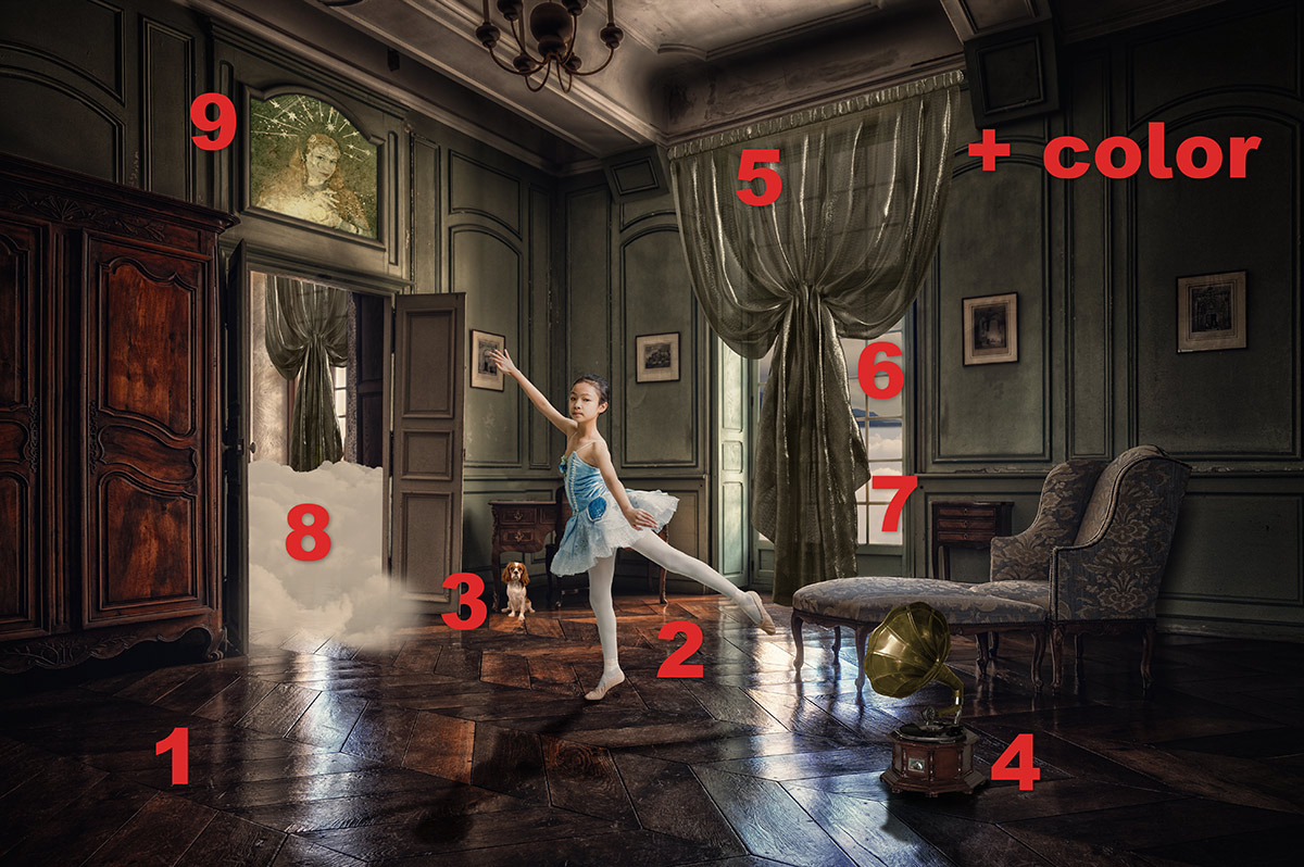 Para llegar a ella hemos tenido que utilizar diversos elementos. Concretamente la imagen se ha compuesto con 9 fotografías: